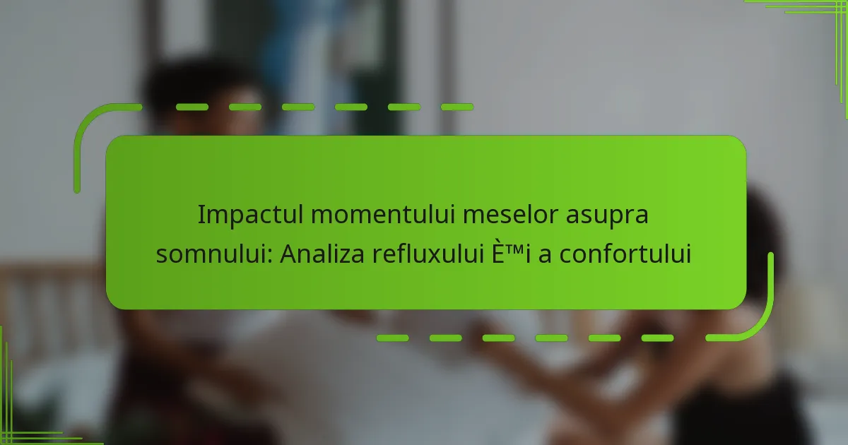 Momentul cinei tale joacă un rol crucial în gestionarea refluxului acid și asigurarea confortului pe parcursul nopții. Pentru a minimiza simptomele, se recomandă să mănânci cu cel puțin două până la trei ore înainte de culcare, permițând o digestie corespunzătoare. În plus, fiind atent la alegerile alimentare poate îmbunătăți sănătatea digestivă și reduce disconfortul.